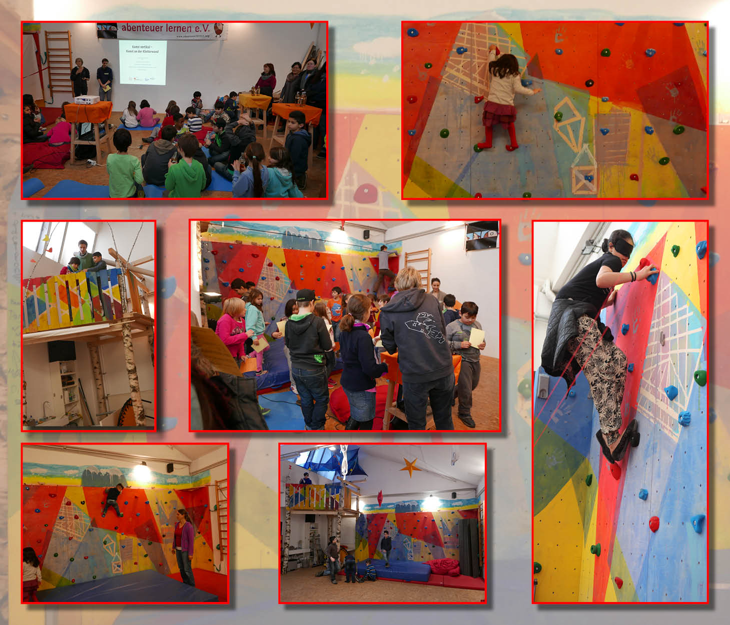 In diesem Projekt haben Jugendliche der Gartenschule/Bonn (seit August 2015: "Rheinschule") sowie Flüchtlingskinder in der Werkstatt von Abenteuer Lernen e.V. eine Kletter- und Bewegungswand gebaut und gestaltet.